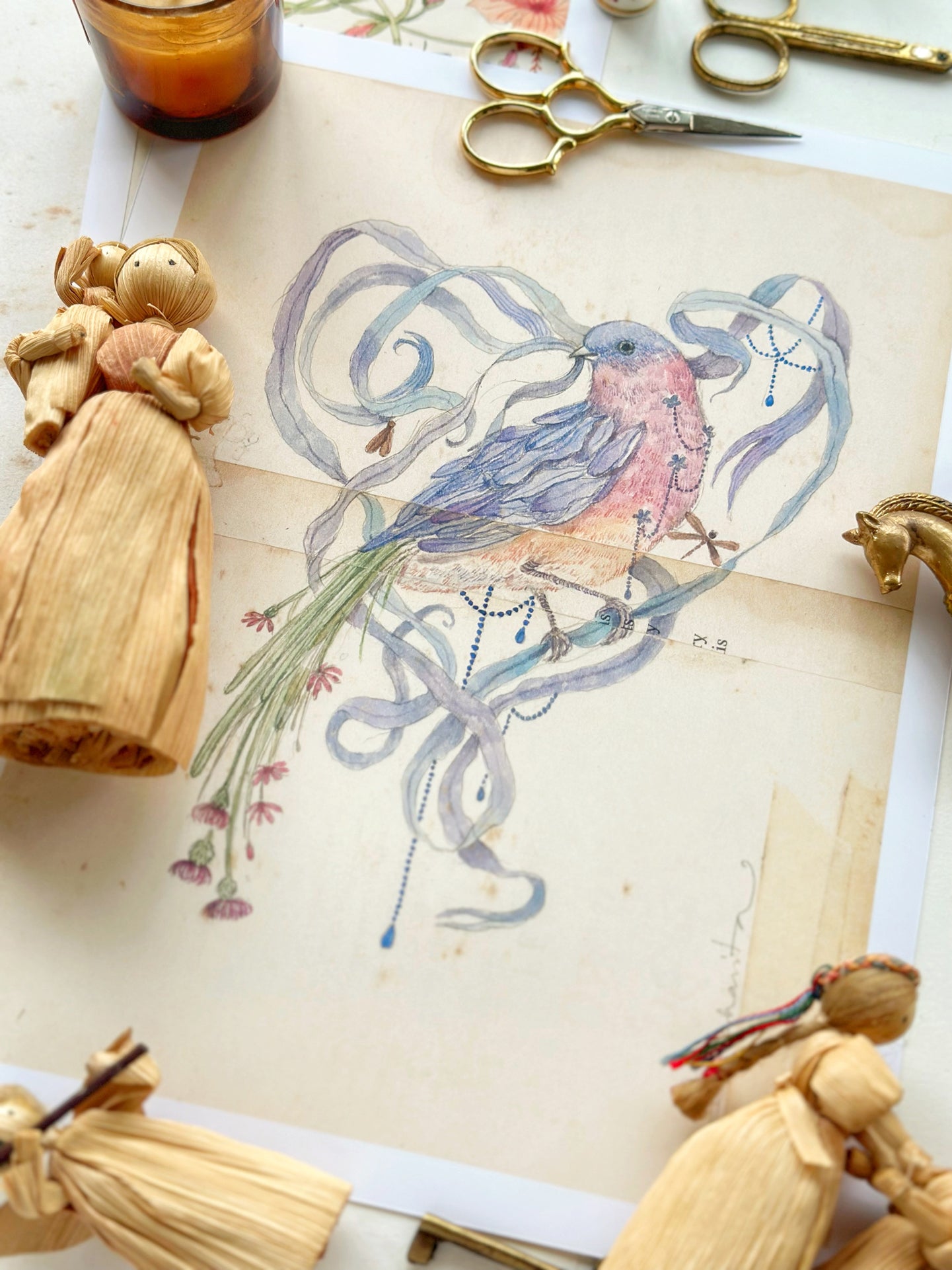 The original artwork of this print is hand painted in watercolor. The artwork is thereafter professionally scanned or shot (depending on the size of the original artwork) to replicate all details of the original work. The scans are then printed onto archival-quality paper having a luxurious texture OR high quality Canvas.