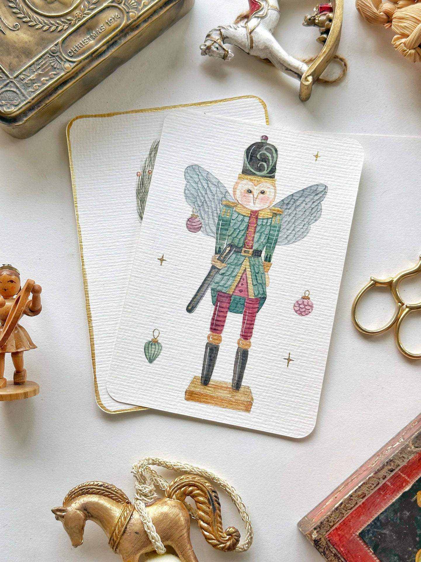 Meet Nutcracker Owl and Berry Hare- two original hand-painted Christmas postcards brimming with charm and storybook magic. Lovely on a gallery wall, cheerful on a festive shelf, and so special to gift. And with a quick change of frame, each piece takes on a whole new character.